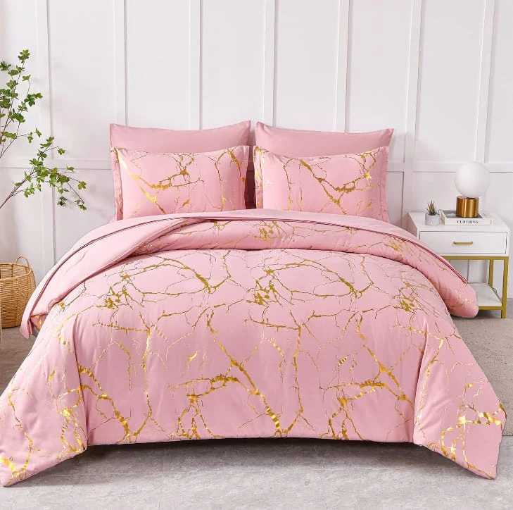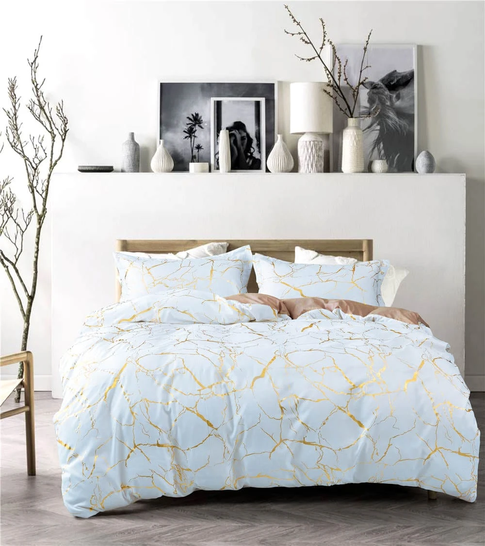 Features a clean, minimal gold marble pattern that adds a subtle touch of elegance to your bedroom décor.